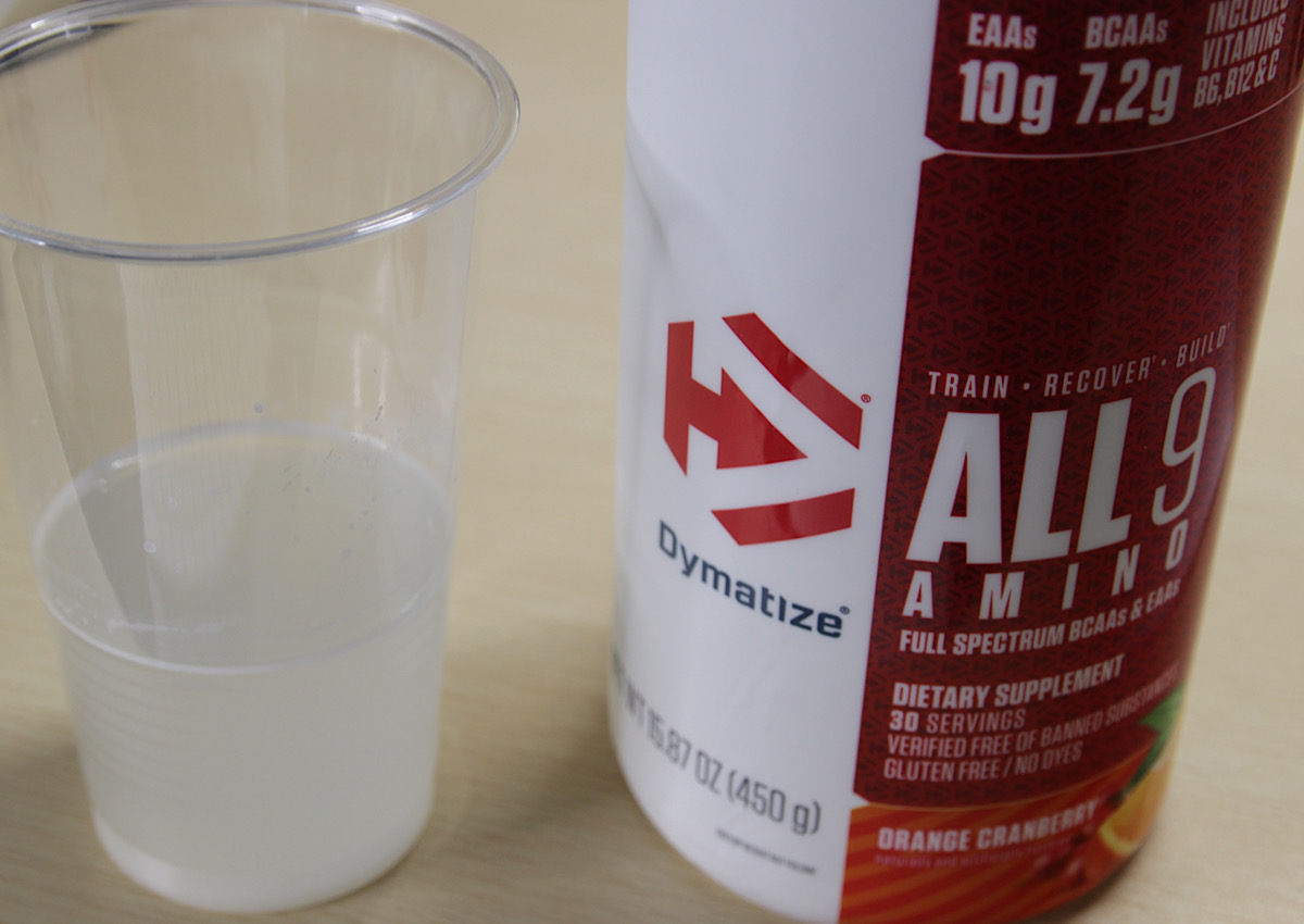 左:ALL9 AMINO(オレンジクランベリー味)