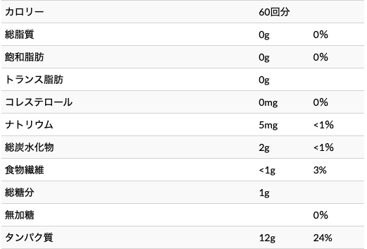これはホエイプロテインで例えるとWPI(価格が高い高品質プロテイン)と同じくらいのスペックです。